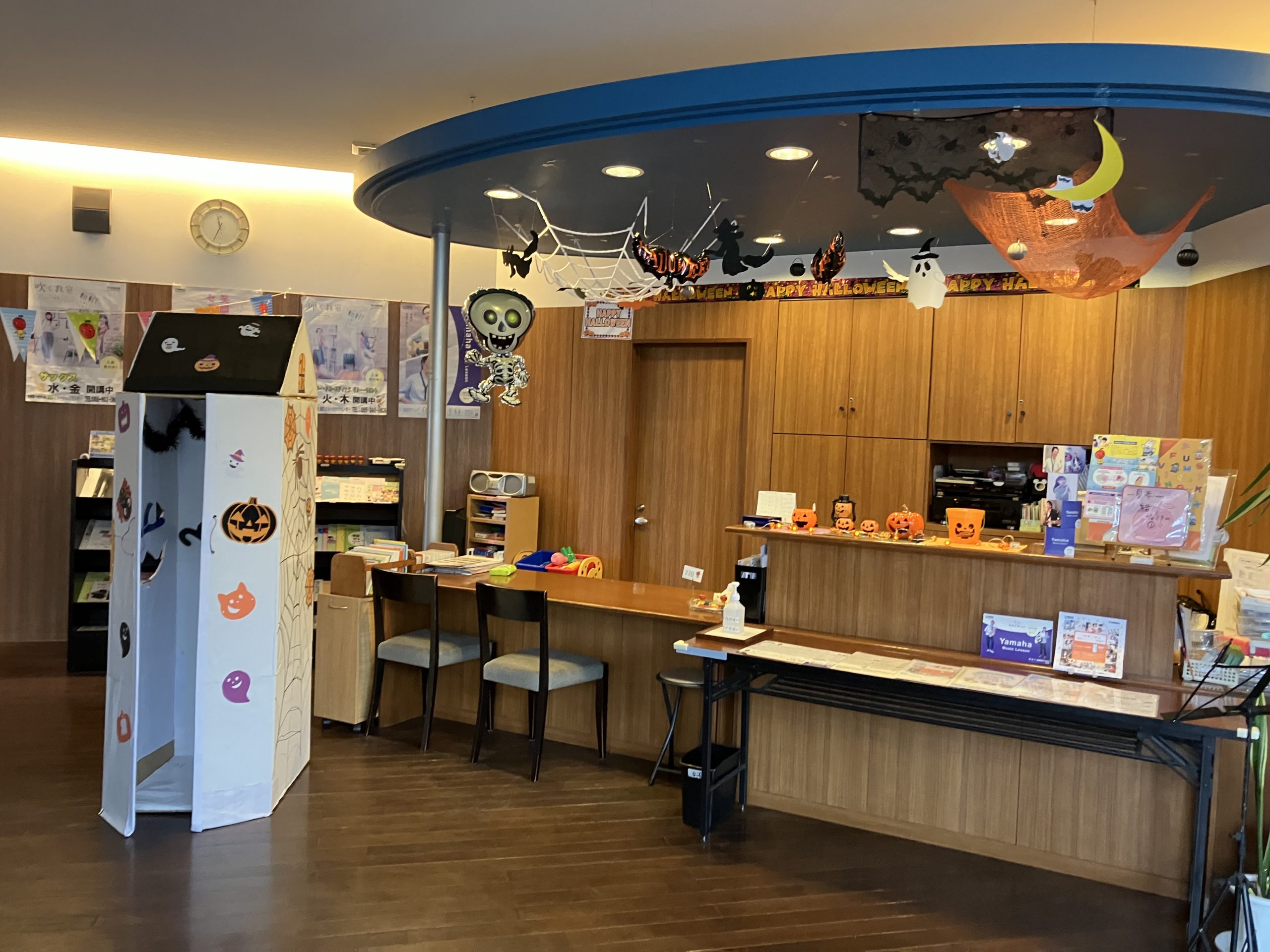 裾野ミュージックセンターのロビーもハロウィン仕様に飾りつけ、BGMともにハロウィンムード満点☆