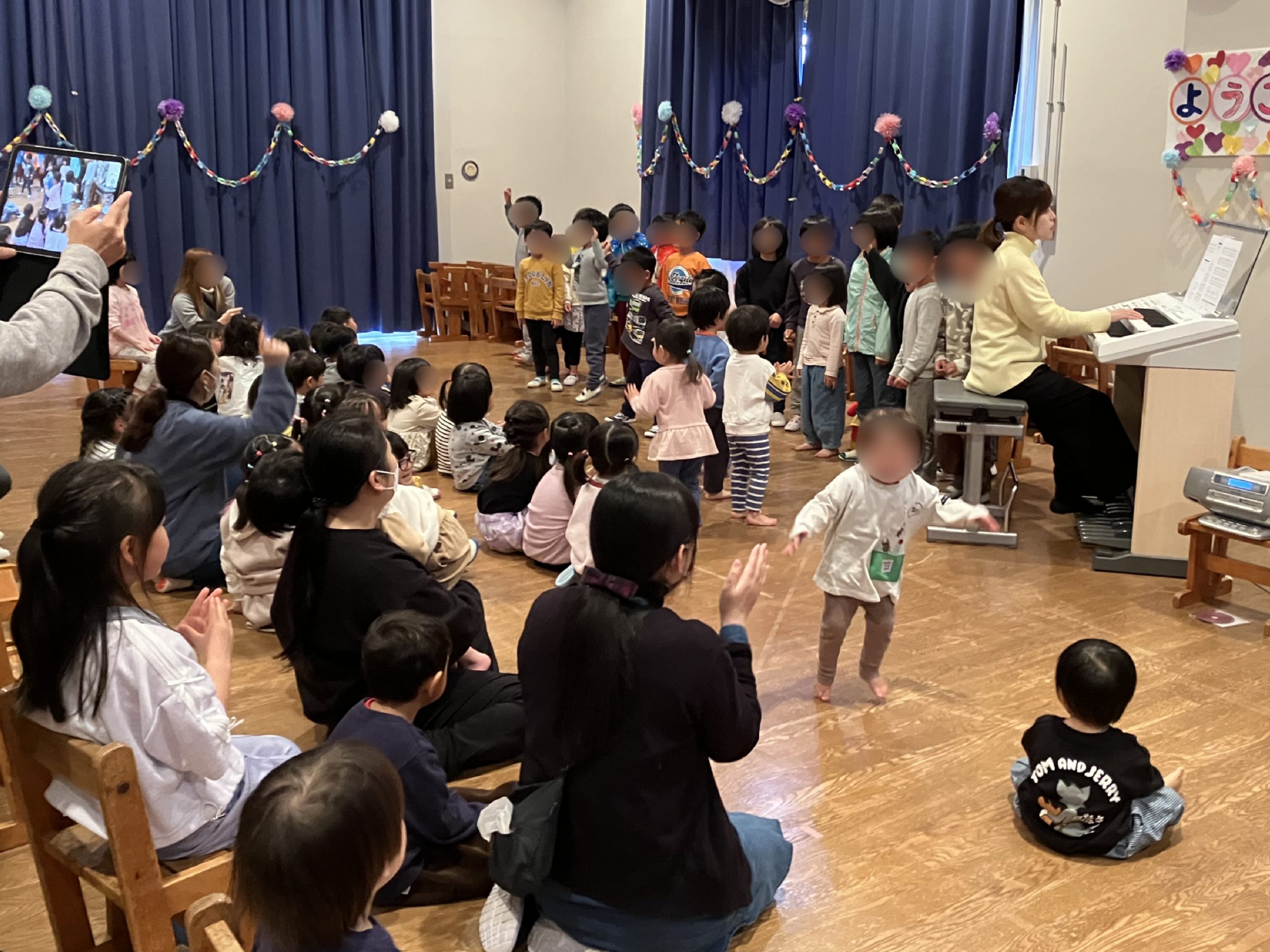 1歳児さんも一緒に前に出てリズムに乗って踊り、和やかで楽しい会となりました。